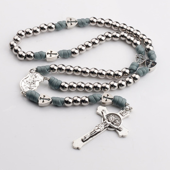 ライトグレーParacordに10mmステンレス钢ビーズロザリオ
