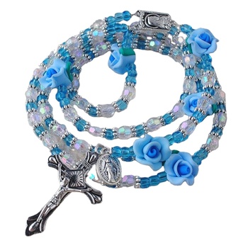 6Mm Transparante Kristallen Kraal En 12Mm Bloemroos Kraal Katholieke Rozenkrans Op Draad Met Maagdelijke Mary Medaille & Jesus Kruisbeeld Ketting
