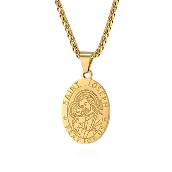 Tôn giáo thép không gỉ huy chương & Chuỗi Saint Joseph Mặt dây chuyền vòng cổ