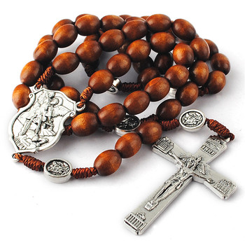 Vòng Cổ Tôn Giáo Chuỗi Hạt Gỗ Màu Nâu Sẫm Cho Nam Giới Với Huy Chương Chống Bạc Virgin Mary