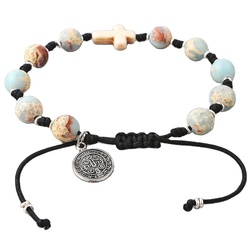 8mm và 6mm aragonite đá hạt Công Giáo Mân Côi quyến rũ Vòng đeo tay với màu ngọc lam đá chéo với St.Benedict huy chương