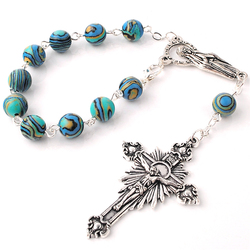 8Mm Màu Xanh Malachite Hạt Công Giáo Một Thập Kỷ Mân Côi Xe Với Virgin Mary Trung Tâm Mảnh Huy Chương & Tôn Giáo Crucifix Pendant
