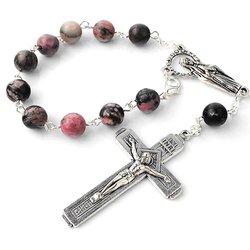 Chuỗi Hạt Đá Rhodochrosite 8Mm Màu Đen Chuỗi Hạt Tràng Hạt Xe Hơi Thập Kỷ Chuỗi Hạt Công Giáo Với Virgin Mary Center Piece Và Tôm Hùm
