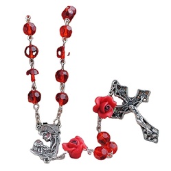 Bán Hot Đẹp Công Giáo Mân Côi Vòng Cổ Trang Sức Thời Trang Trong Glass Pearl Với Coral Rose Hạt Nhà Thờ Cung Cấp