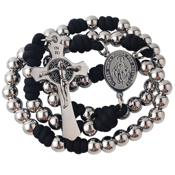 8 mét thép không gỉ hạt kinh Mân Côi với thép không gỉ Virgin Mary trung tâm và St.Benedict crucifix