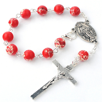 Hạt Đá Hoàng Đế 8Mm Một Thập Kỷ Chuỗi Hạt Xe Ô Tô Đỏ Mân Côi Các Mặt Hàng Tôn Giáo Công Giáo Với Mặt Dây Chuyền Chữ Thập Và Huy Chương Trinh Nữ Mary