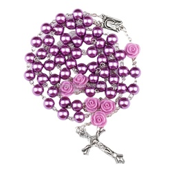 Chất Lượng Cao New Đẹp Công Giáo Tràng Hạt Vòng Cổ Trong Glass Pearl Với Rose Hạt Cá Nhân Thiết Kế Trang Sức